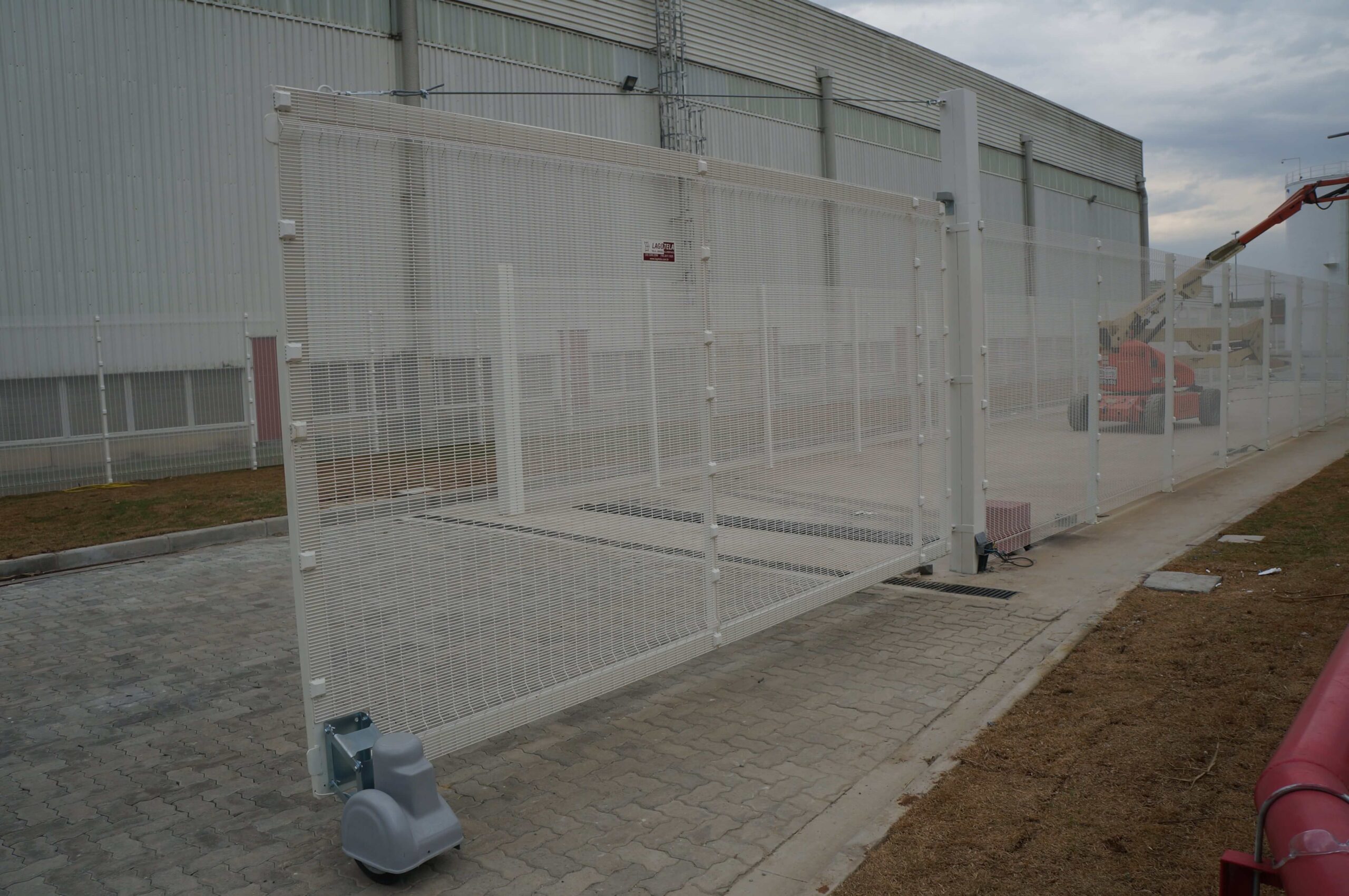 • Portões de acesso em estrutura metálica, com gradil, mecanizados.