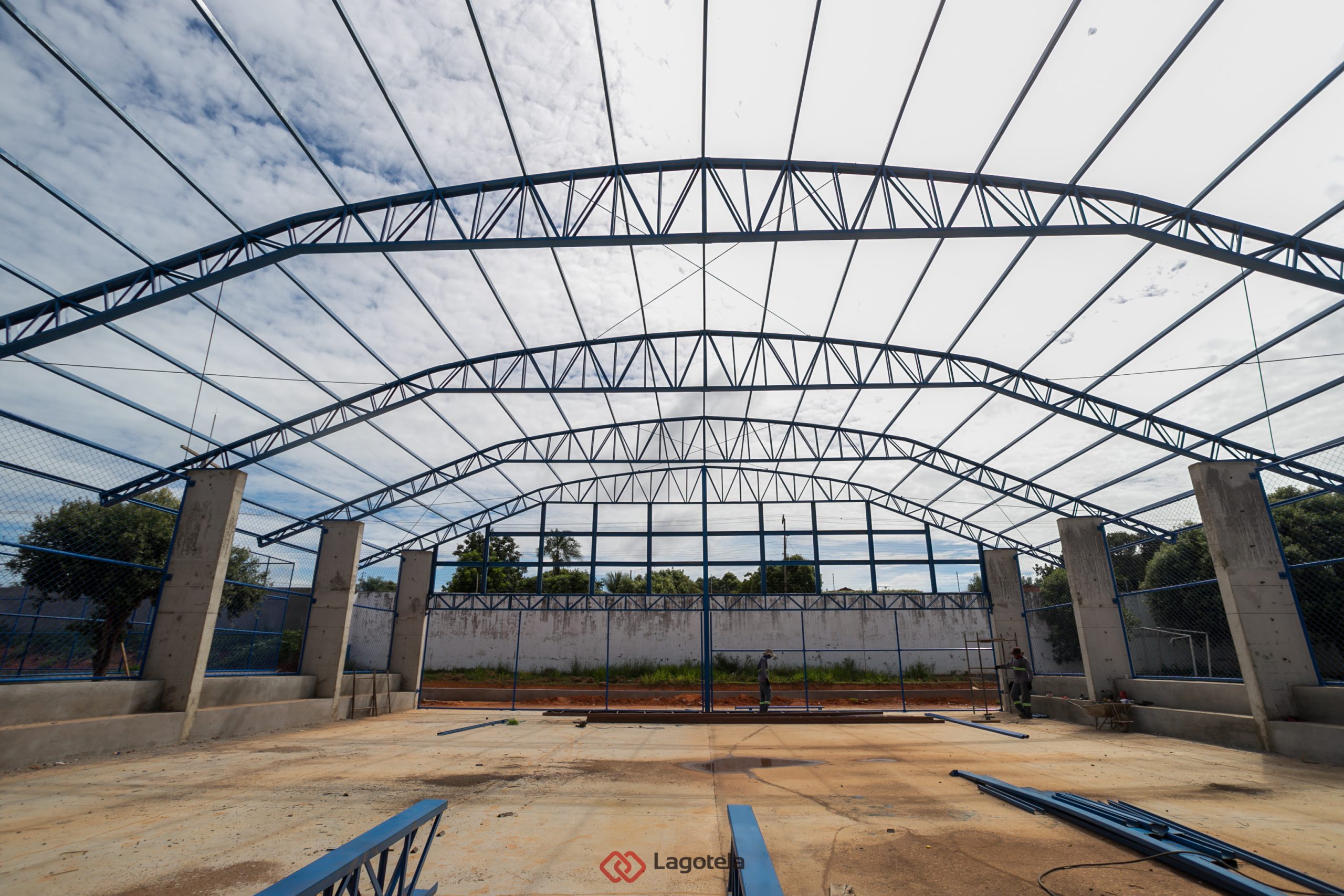 Uma obra 100% Lagotela, construímos a quadra poliesportiva com vestiários, o campo de futebol Society e a quadra de vôlei; além de um intensivo trabalho na elaboração das arquibancadas e a pavimentação interna, agregando o paisagismo para a área.