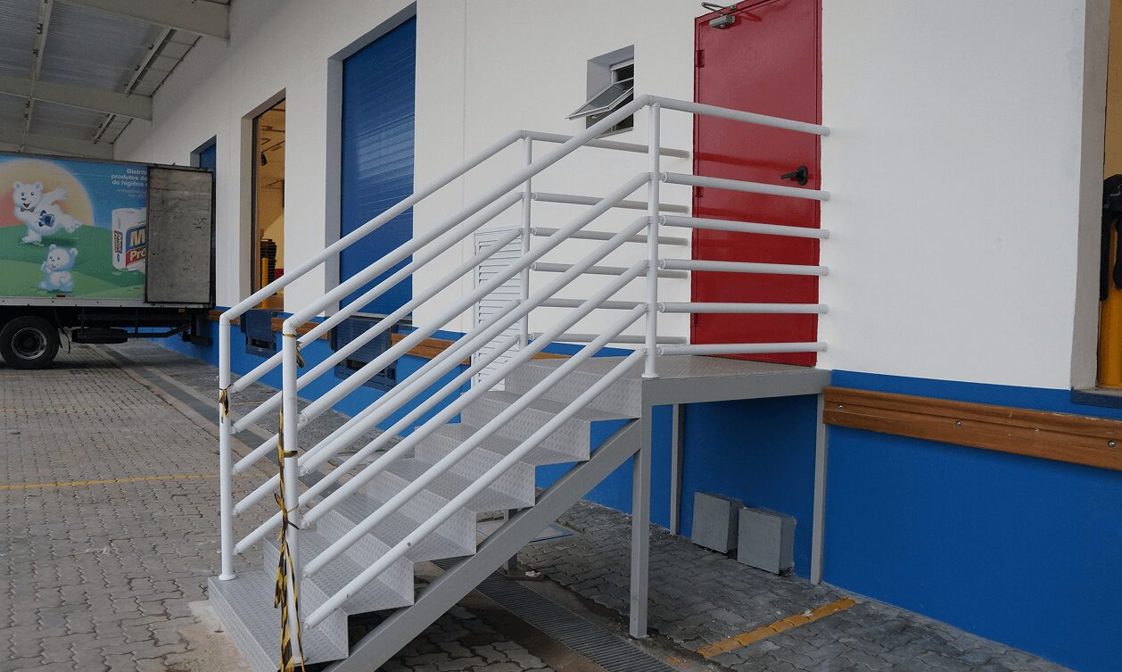 Escadas metálicas de aço com pintura eletrostática, unindo resistência, elegância e funcionalidade para garantir durabilidade, segurança e um design que valoriza qualquer ambiente.